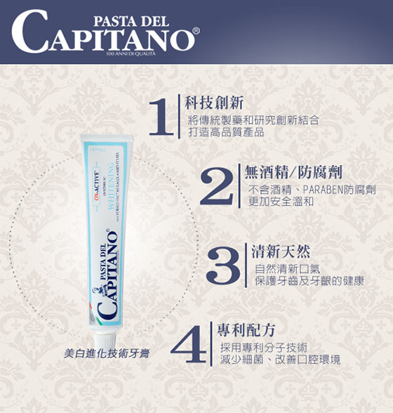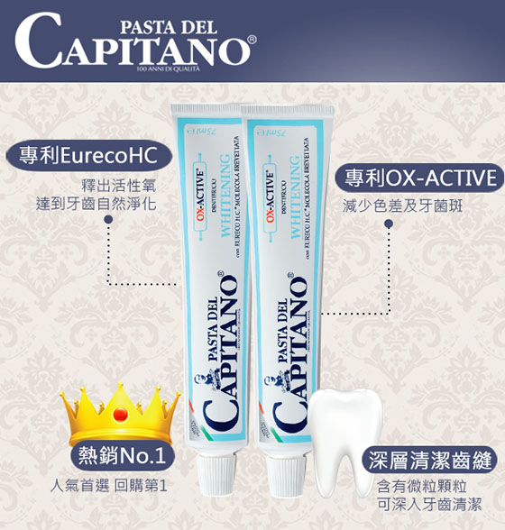 品名:【PASTA del CAPITANO 義大利隊長】亮白進化技術牙膏75ml