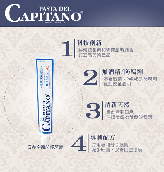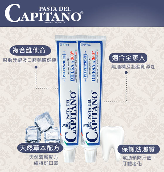 品名:【PASTA del CAPITANO 義大利隊長】口腔全面防護牙膏75ml