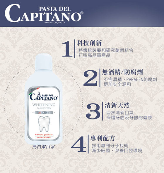 品名:【PASTA del CAPITANO 義大利隊長】亮白漱口水400ml