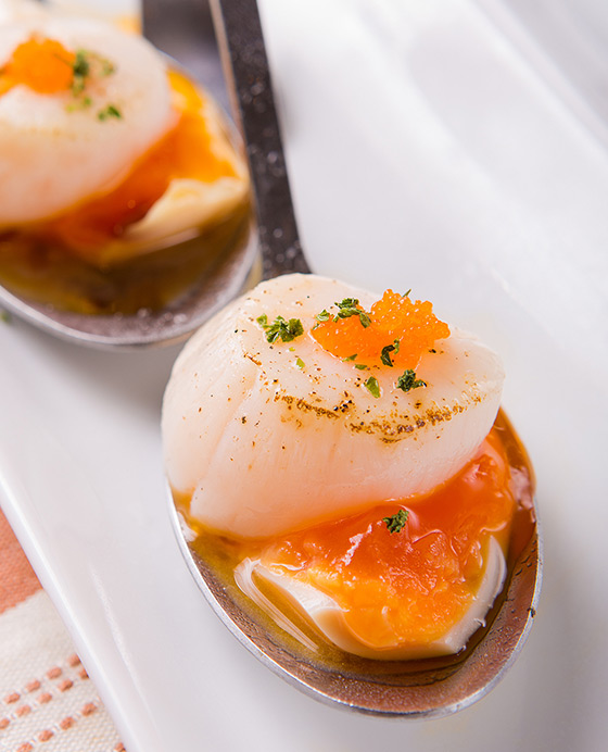特選生食干貝~經過主廚特製醬汁炙燒過後,與特製半熟日式糖心蛋,兩者融於口中結合,醬汁甘甜中帶著濃郁蛋香的口感令人想一口接一口。
